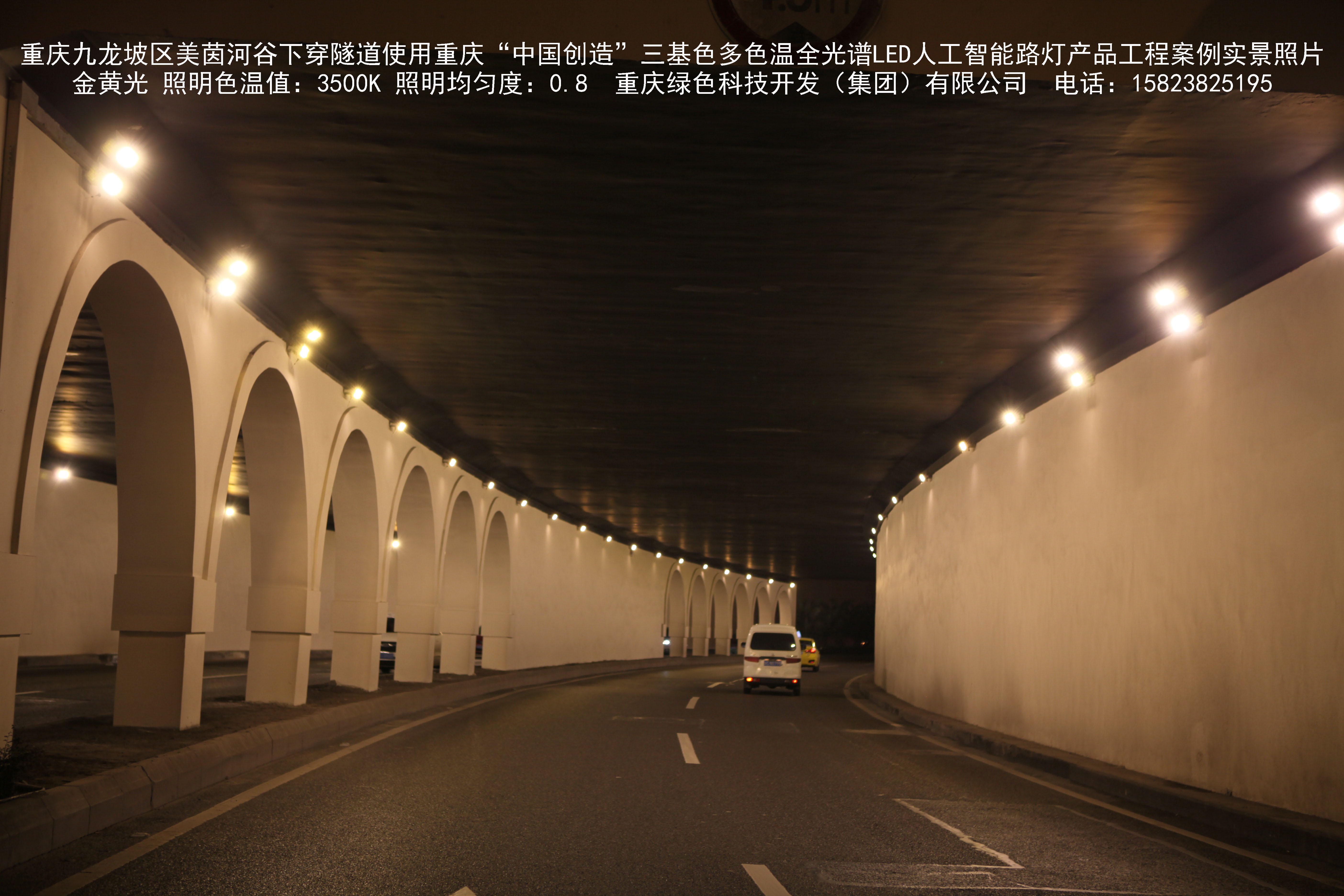 2018年9月,重慶市九龍坡區(qū)城市管理局使用我司自主研發(fā)制造的重慶“中國創(chuàng)造”三基色多色溫全光譜LED人工智能隧道燈系列產(chǎn)品,實施了美茵河谷下穿隧道市政設施品質提升工程。該工程已全面竣工。工程實施后,極大地提高了城市照明清晰度、燈光均勻度、舒適度。通過智能終端實現(xiàn)單燈感知、線纜防盜報警,與原高壓鈉燈相比,節(jié)能率60%以上,有效解決了關閉控制回路或間隔關燈方式造成的照明暗區(qū),確保行人和車輛通行的安全,實現(xiàn)城市路燈照明系統(tǒng)的智能化管理,推進了智慧城市建設。